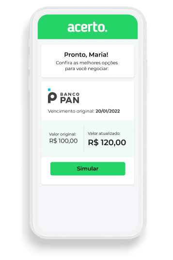 Com a Acerto, sua negociação com o Banco PAN é feita de forma digital, sem precisar atender a ligações incômodas.