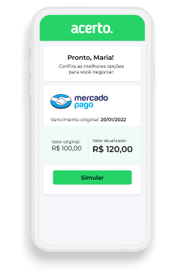 A Acerto, especialista em negociação digital de dívidas, e o Mercado Pago — braço financeiro do Mercado Livre e uma das maiores plataformas de pagamento da América Latina —, se uniram para oferecer uma solução rápida e segura para você quitar suas dívidas.